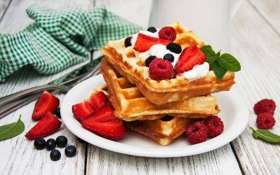 - Die Waffeln auf einem Kuchengitter abkühlen lassen und mit Staubzucker, halbgeschlagenem Obers und / oder frischen Früchten servieren.