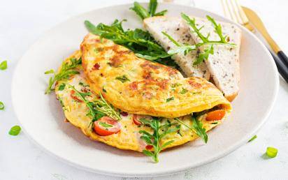 - Rucola auf das Omelette streuen und zusammenklappen.