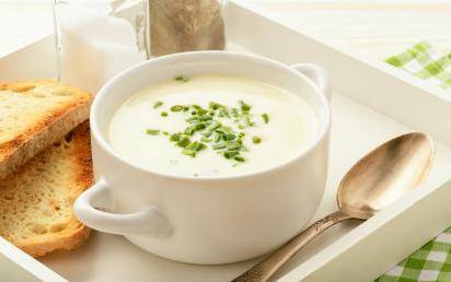 8. Suppe in Tellern anrichten und mit Brotwürfeln und fein geschnittenem Schnittlauch bestreuen.