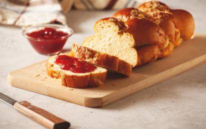 Der Zopf kann nach dem Bestreichen und vor dem Backen noch mit Mandelblättchen oder Hagelzucker bestreut werden!