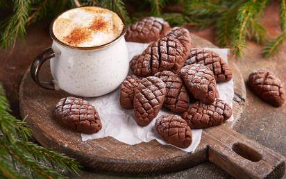 3. Mehl mit Kakaopulver und Backpulver vermischen und zur Buttermischung geben. Rasch zu einem weichen Teig verkneten. Zu einer Kugel formen, etwas flach drücken, in Frischhaltefolie wickeln und etwa 60 Minuten im Kühlschrank rasten lassen.
